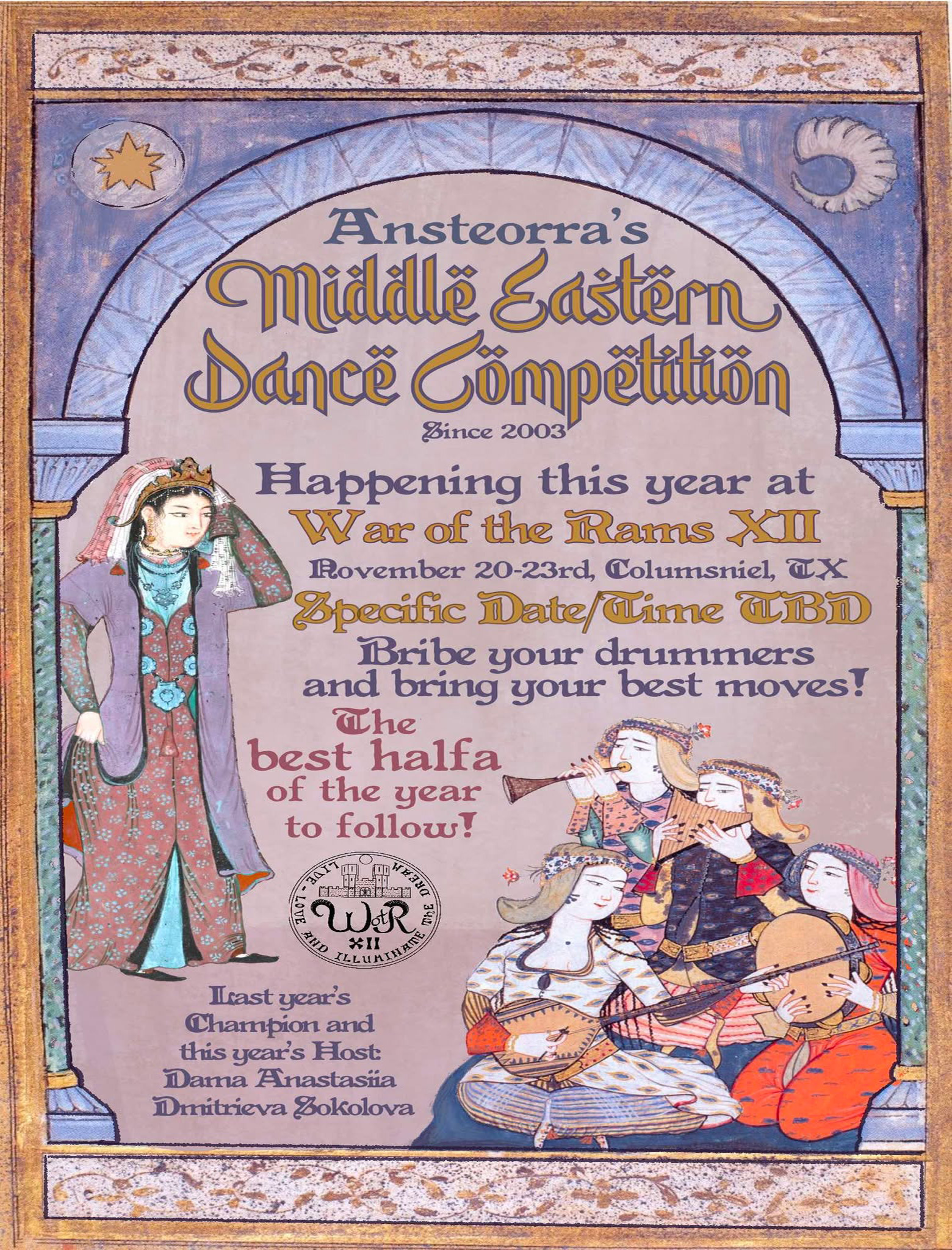 If you are in charge of vigil, party, putting on entertainment or other activity you want people to know about, Please contact our Merriment Steward Lady Magdalena de Paz to coordinate.